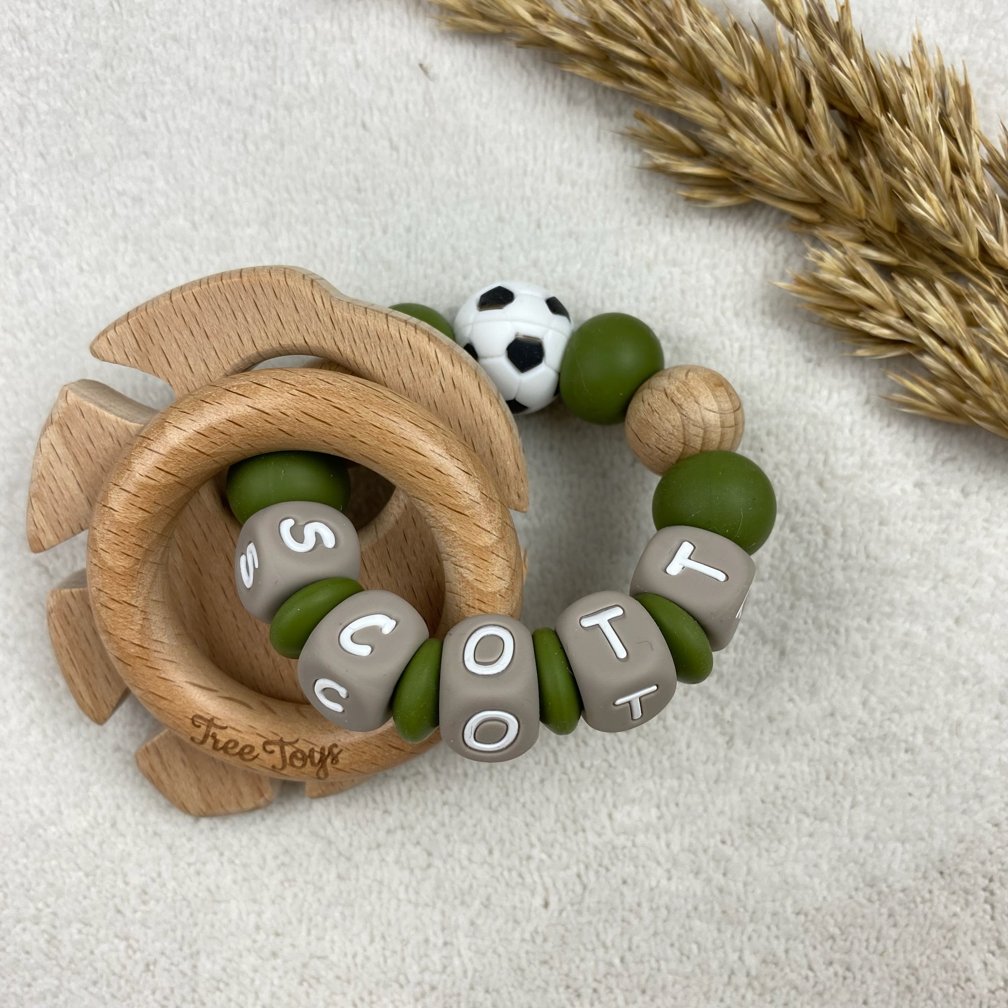 Een bijtring met naam is onmisbaar voor jou baby wanneer hij of zij tanden gaat krijgen. De siliconen kralen zorgen voor een lekker gevoel en minder pijn bij doorkomende tanden.