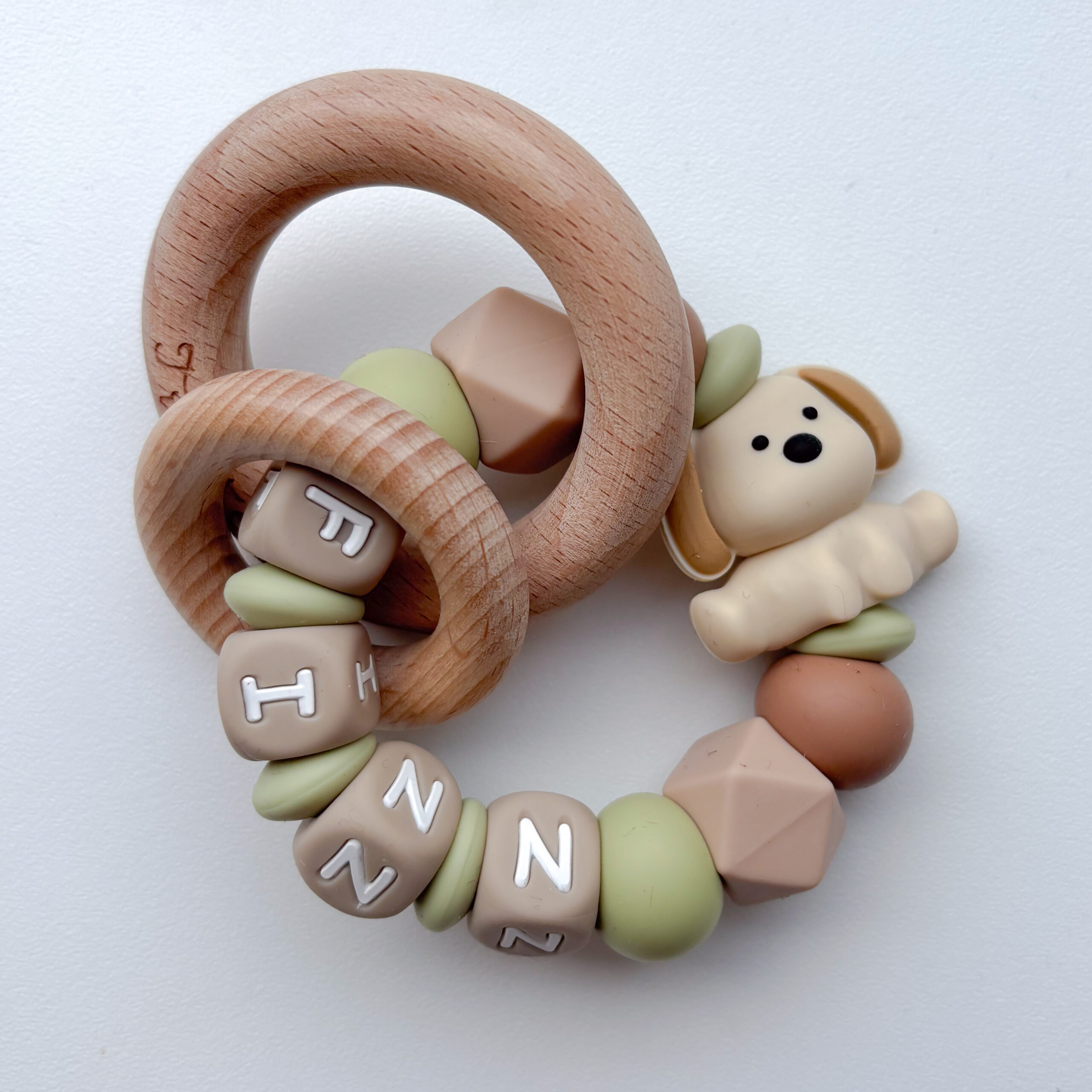 ✨ Bijtring met naam (optioneel) – Gepersonaliseerde op hand gemaakte bijtring.