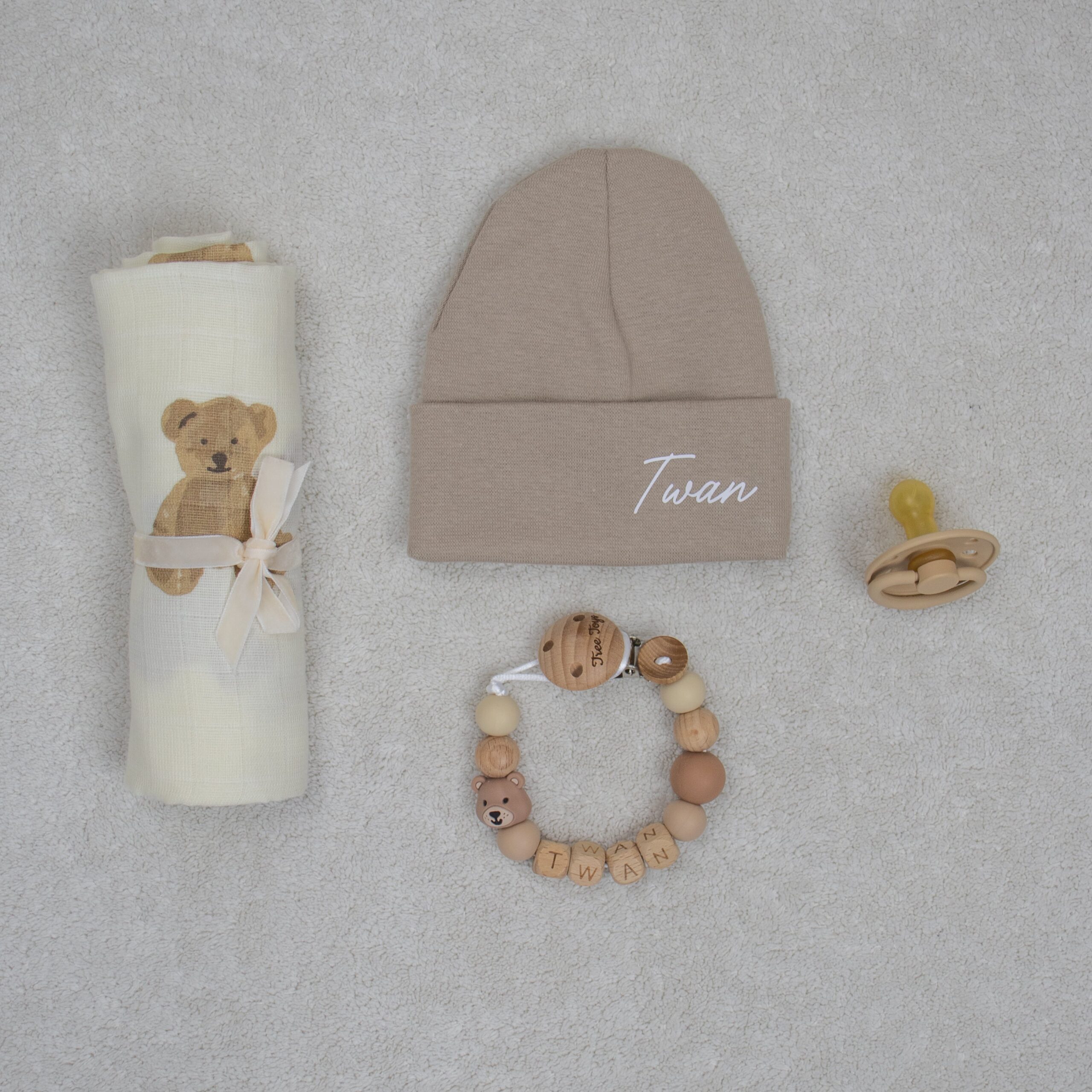 🍼 Speen – Een veilige en comfortabele speen in neutrale kleur.