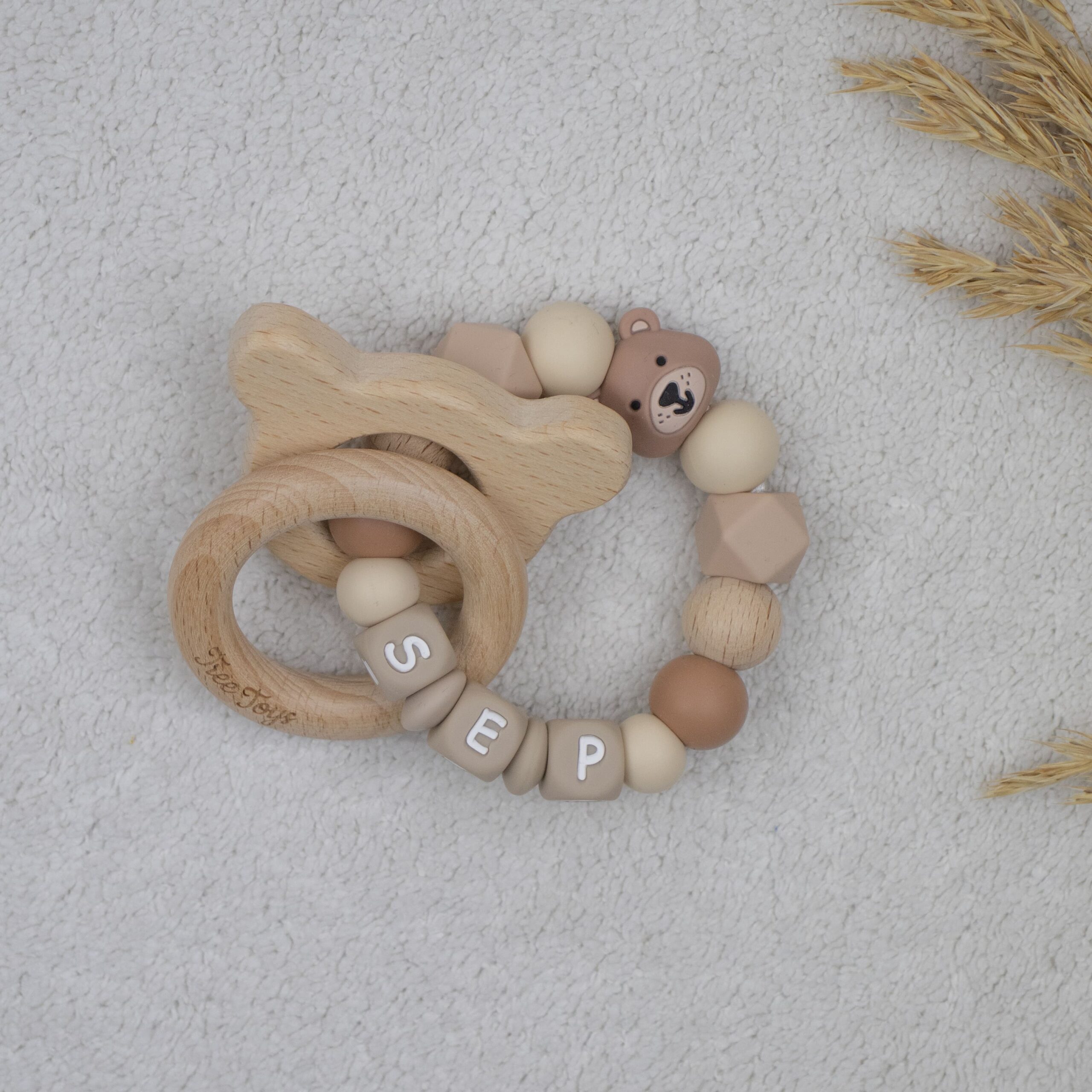 ✨ Bijtring met naam (optioneel) – Gepersonaliseerde op hand gemaakte bijtring.