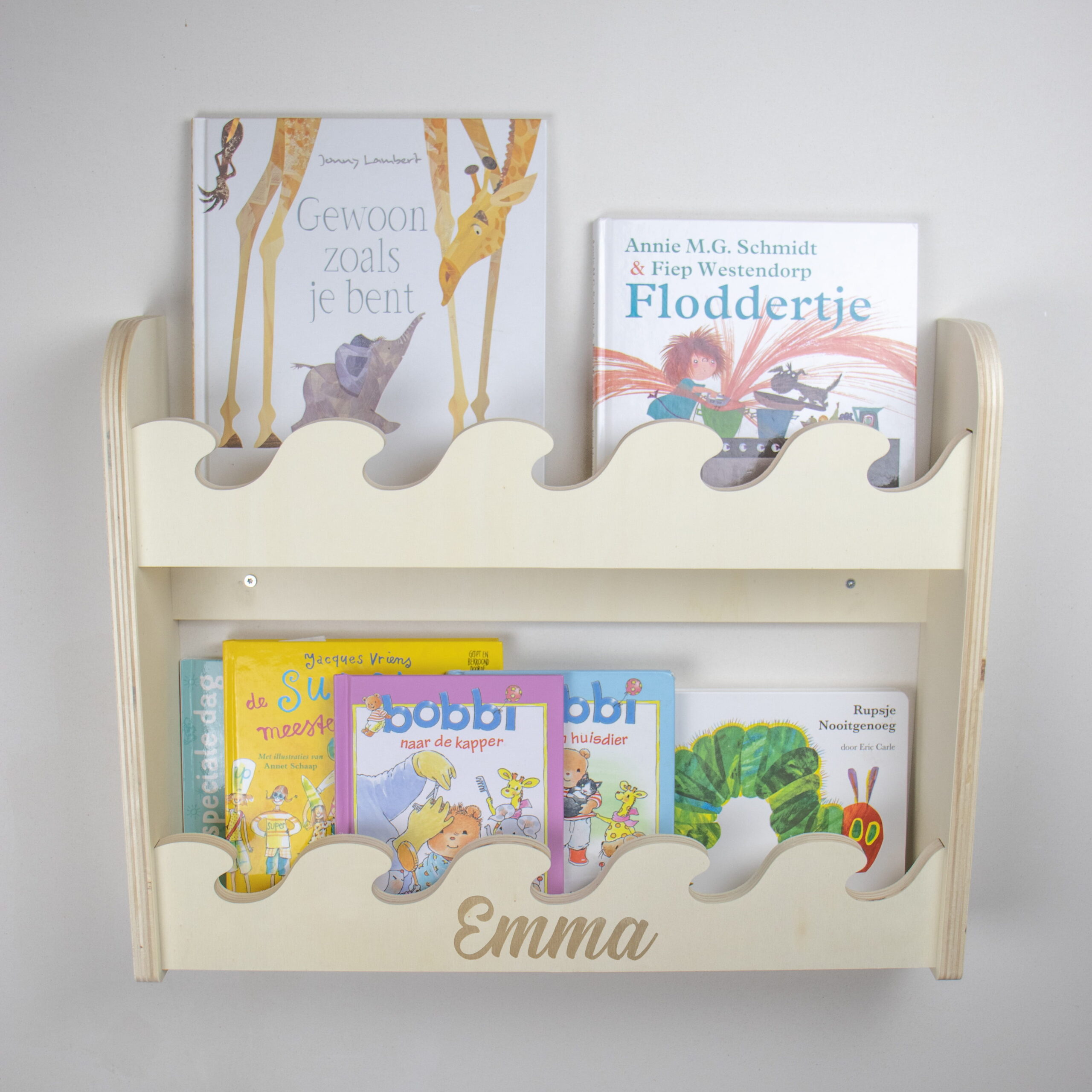 Boekenrek met naam kinderkamer ~ golfjes twee laags