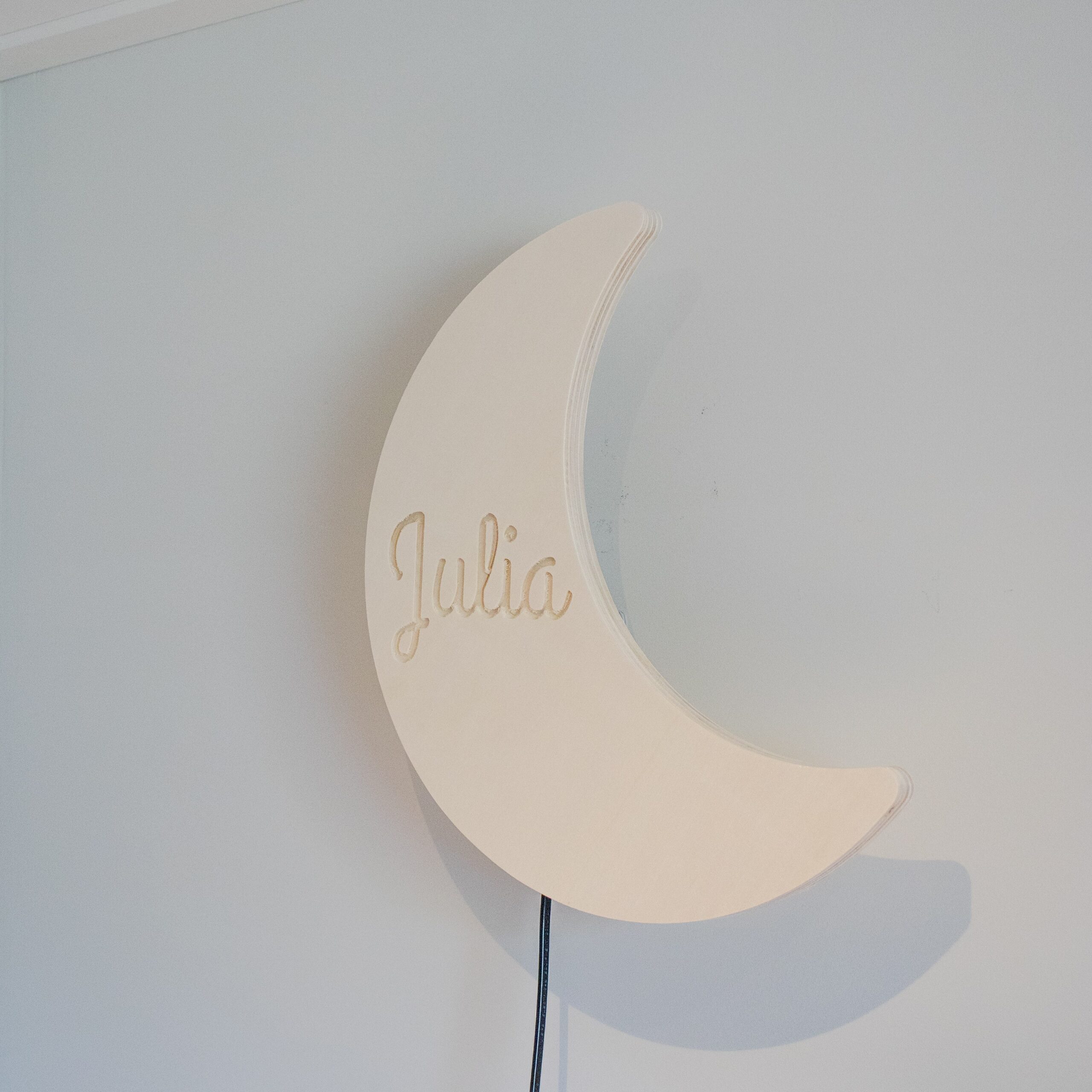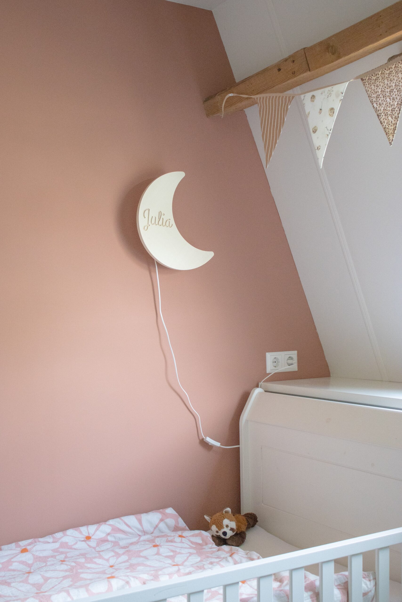 Gemaakt van duurzaam hout, met een veilige afwerking, handige schakelaar en stekker: onze houten wandlampen combineren sfeer, stijl en gebruiksgemak. Elke lamp is met de hand gemaakt en gepersonaliseerd met de naam van jouw kindje – een écht uniek item voor in de baby- of kinderkamer.