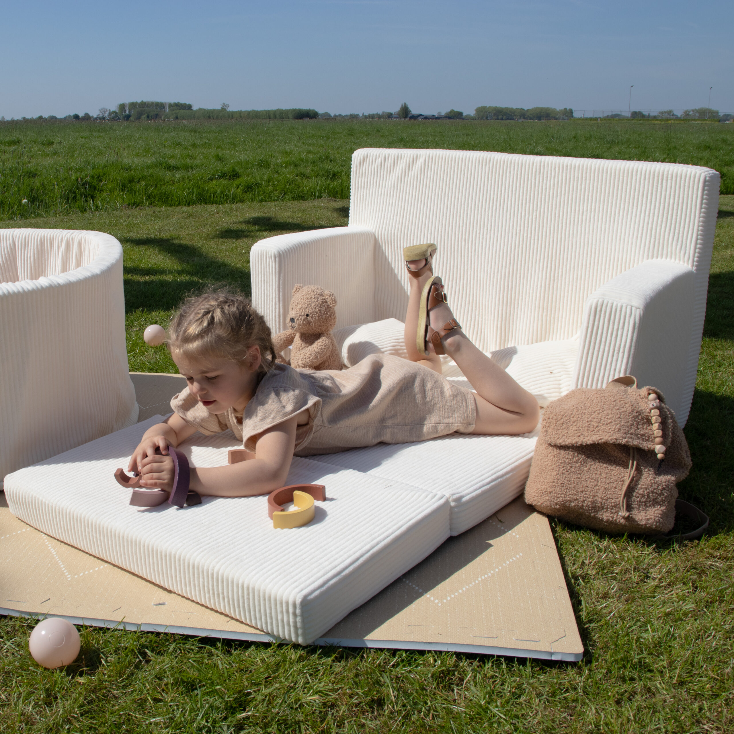 Prachtige bank. Mooie zachte corduroy stof, voordeel is dat je het kunt wassen. Zou fijn zijn als er een beschrijving werd meegeleverd over hoe het bankje in elkaar gezet moet worden. We waren daar wel eventjes mee bezig geweest. Één echte nadeel; Mijn kind weegt 21 kilo en is 4 jaar. Wanneer zij op de rugleuning leunt valt t bankje achterover. Het bankje moet echt tegen een muur leunen.