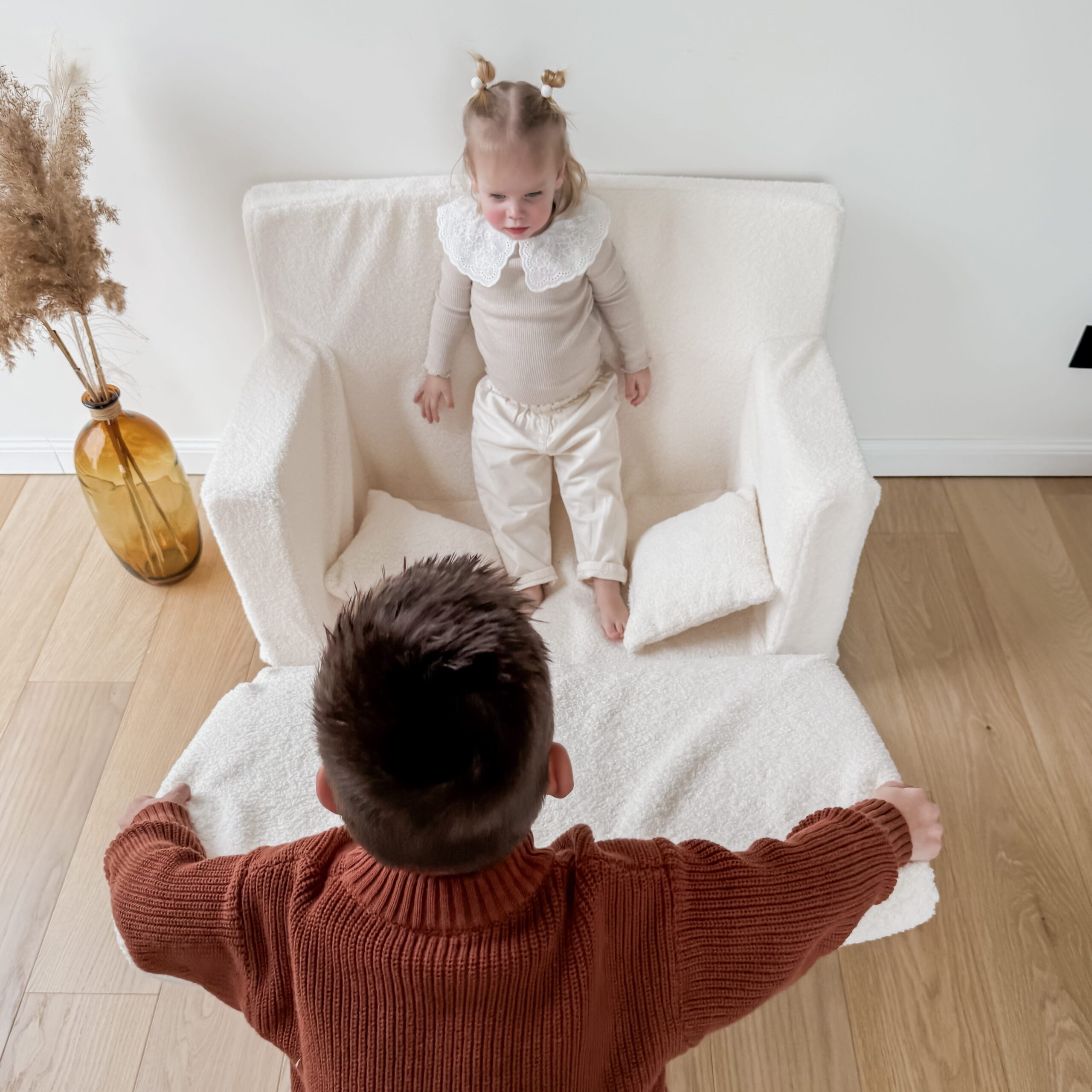 Deze te gekke kinderfauteuil wil je toch hebben wanneer jij lekker op de bank zit kan jouw kleintje ook op zijn of haar eigenbank zitten.