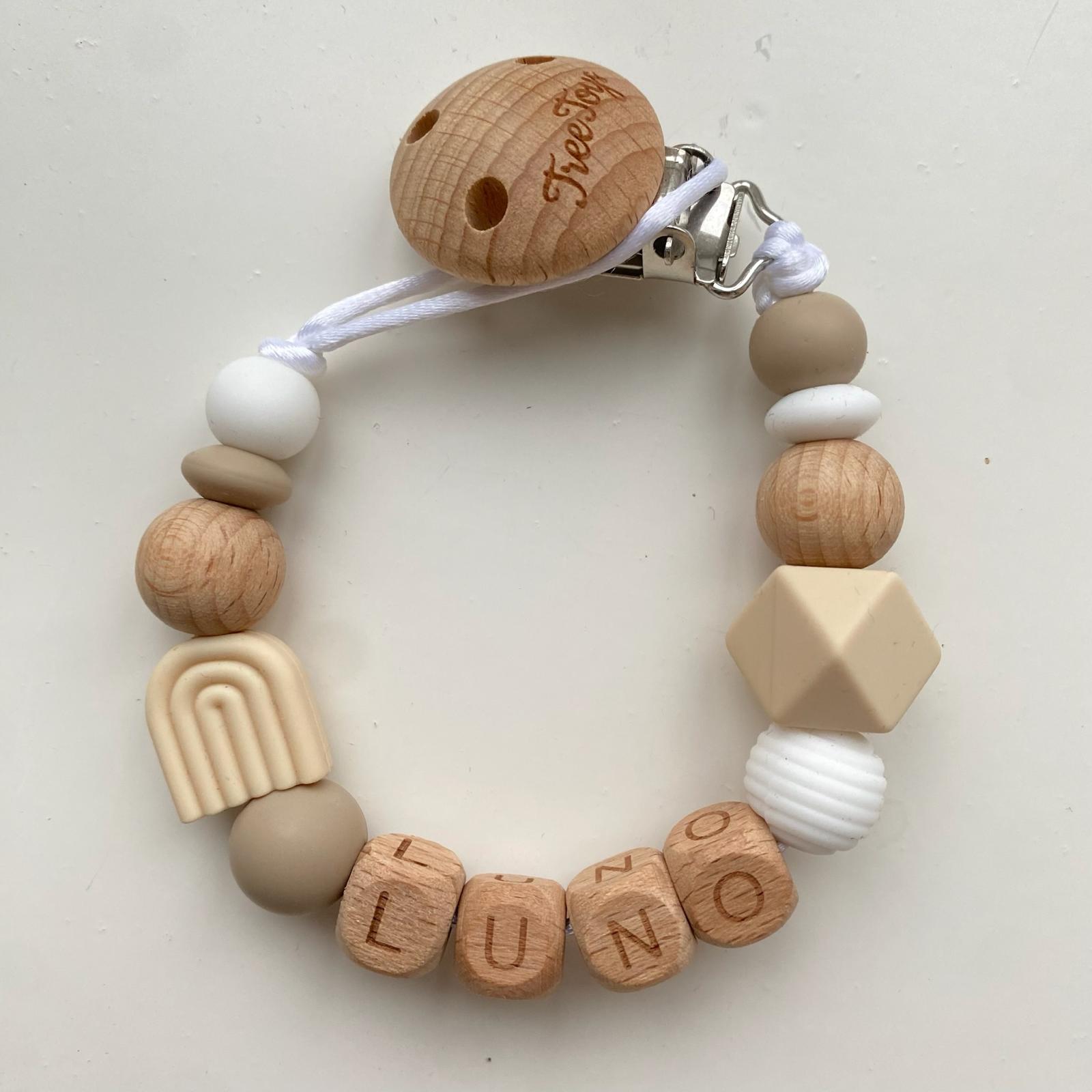 Wilt jij ook de speen van jou kleintje niet meer kwijt zijn? Een speenkoord met naam van TreeToys is de oplossing en natuurlijk helemaal te personaliseren naar wens.